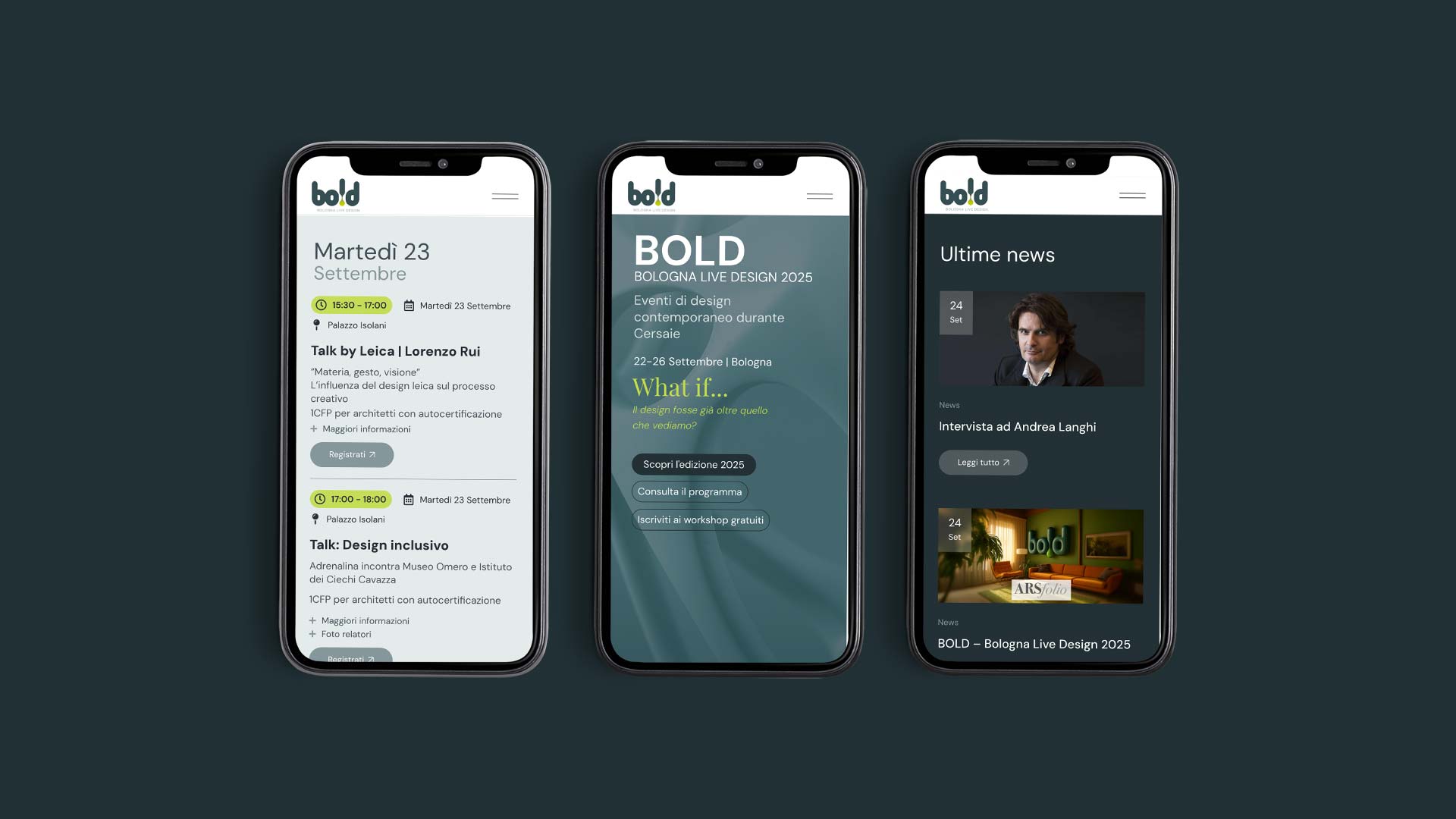 Siamo partiti da uno studio approfondito che ha portato alla creazione del logo e dell’identità visiva dell’evento. Successivamente, abbiamo realizzato tutti i materiali below the line necessari e sviluppato il sito internet ufficiale di BOLD.