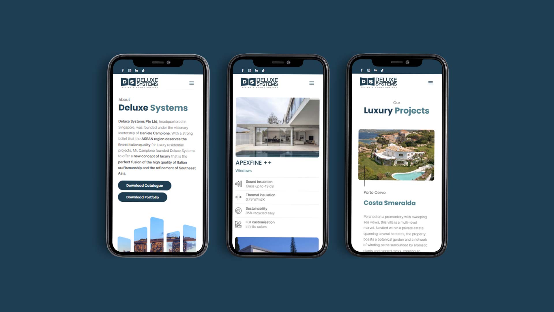 Il progetto sviluppato per Deluxe Systems è partito da un’analisi del mercato target degli architetti e degli interior designer per poi sviluppare un framework funzionale alle loro richieste. Per questo, dopo un’analisi UI e UX, è stato definito di mettere al centro del progetto le realizzazioni che sono la principale fonte di ispirazione per il target per capire le possibili applicazioni del prodotto. Abbiamo poi sviluppato una parte dedicata al prodotto e alle sue caratteristiche peculiari, evidenziando che l’azienda è stata scelta da Ponzio come official dealer per Singapore.
